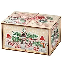 Деревянные посылки пользуются большим спросом из года в год, поэтому в нашей коллекции сладких новогодних подарков им уделяется отдельный раздел. Если вам нужен подарок, не привязанный к символу года, то предлагаем вариант «Посылка Снеговики». По форме это деревянный короб размером 21*11*16 сантиметров. На рисунке на верхней части пара озорных снеговичков на фоне еловых и рябиновых веток. Есть строчки от кого и для кого посылка. Также есть почтовая символика и белоснежные снежинки по всем граням упаковки. Сладкий набор под крышкой, вес 1000 граммов. Отборные кондитерские изделия от проверенных временем фабрик нашей страны, отличные новинки в ярком этикете – все только лучшее для вас и ваших детей.